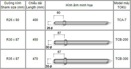 Mũi đục hơi TCA-7, mũi đục hơi TCB-200, mũi đục hơi TCB-300 xuất xứ Nhật Bản, đầy đủ CO-CQ.
