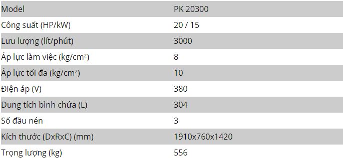 - Thông số kỹ thuật của máy nén khí piston Puma 20HP Đài Loan