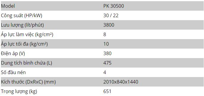 - Thông số kỹ thuật của máy nén khí piston Puma 30HP Đài Loan