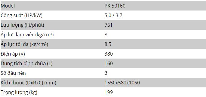 - Thông số kỹ thuật của máy nén khí piston Puma 5HP Đài Loan