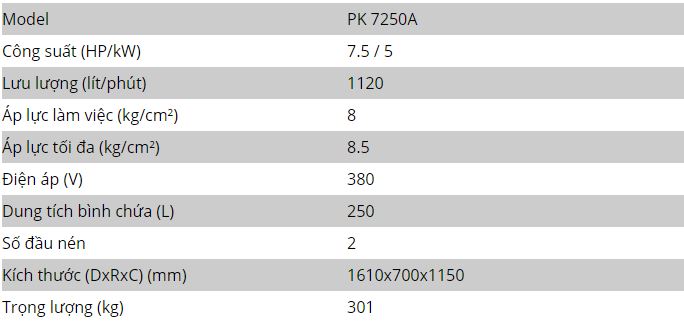 - Thông số kỹ thuật của máy nén khí piston Puma 7.5HP Đài Loan