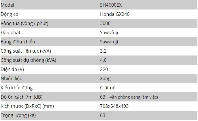 - Công suất dự phòng: 4.0 Kva