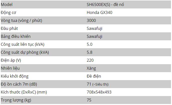 Máy phát điện Elemax SH6500EX(S) đề nổ đặc điểm nổi bật: