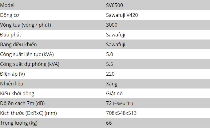 - Công suất dự phòng: 5.5 Kva